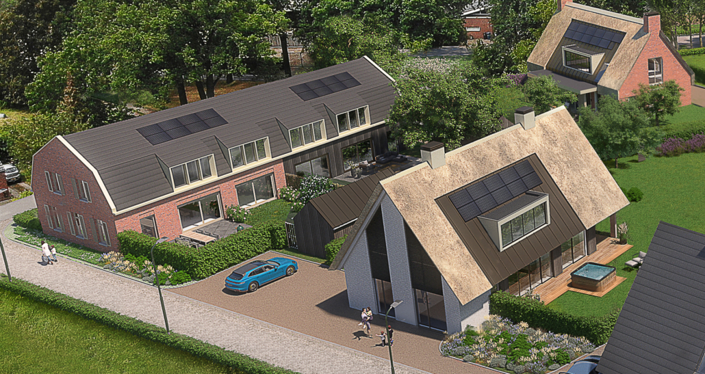 Aan het historische lint van de Dubbestraat bevindt zich een royale twee-onder-een-kapwoning, vormgegeven als een eigentijdse boerderij met een knipoog naar het verleden. Deze twee woningen worden binnen het ensemble aangeduid als ‘Boerderijwoning’. Het ontwerp doet op respectvolle wijze eer aan de traditionele Brabantse langgevelboerderij, waarbij het karakter van het woonhuis en de voormalige stal op harmonieuze wijze is vertaald naar deze tijd.